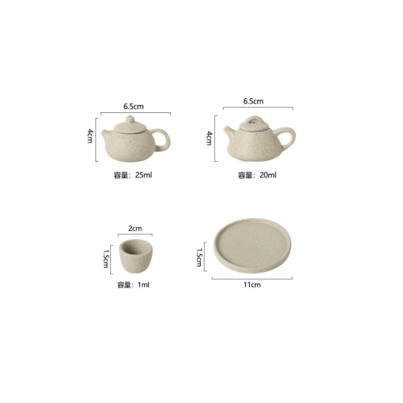 0.8 Fl Oz/20 ML Rough Pottery Handmade Miniature And Mini Teapot Sets.Expertly handcrafted from high-quality pottery, these mini teapots carry a rustic charm that elevates any tea collection. The rough, textured finish of each teapot gives it a unique, one-of-a-kind appeal, ensuring no two pieces are exactly alike. The rustic, earthy tones enhance the natural beauty of the pottery, making it an ideal choice for those who appreciate handmade items with a rich, artisanal touch.With a compact 0.8 Fl Oz/20 ML capacity, this mini teapot set is perfect for more intimate tea moments. The set includes carefully crafted teacups that match the teapot, completing the tea experience with coordinated design elements that highlight their handcrafted beauty. Each piece is shaped with care, with attention to detail that ensures a pleasant pouring experience. The teapot’s spout is designed for easy and controlled pouring, and the sturdy handle offers a secure grip, making it easy to serve your tea without spills.This one can be used together with Japanese tea sets.