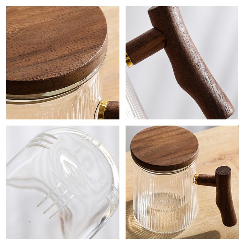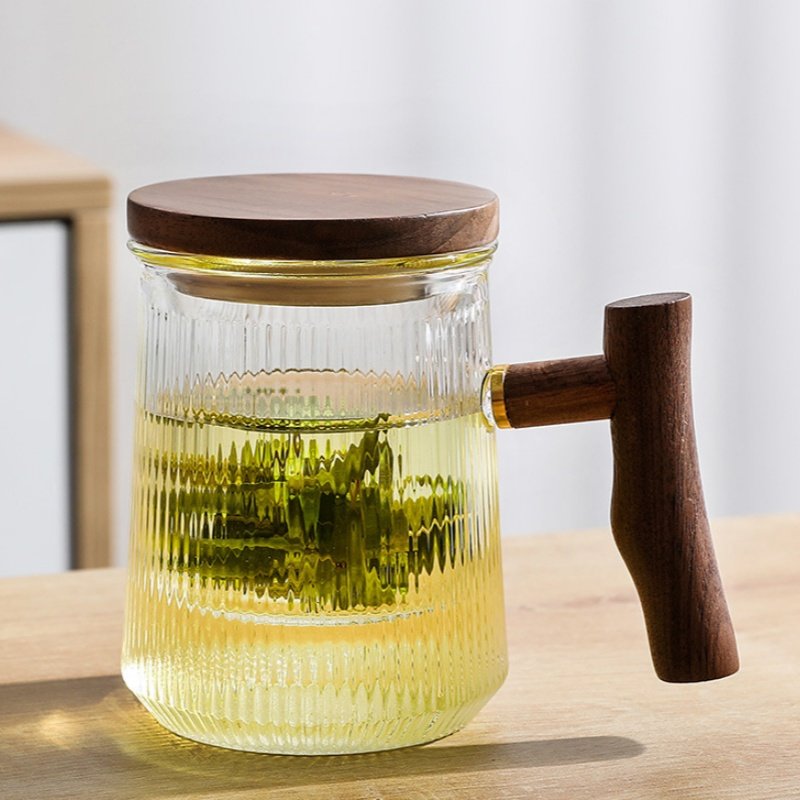 Experience the ultimate in tea-drinking luxury with our exquisitely designed Crystal Glass Tea Mug. The high-quality crystal glass construction not only offers an elegant look but also ensures durability and longevity, making it a perfect addition to your daily routine. The integrated tea strainer is crafted for optimal brewing, allowing you to steep your loose leaf tea to perfection, while the wooden lid provides both a heat-retaining function and a natural aesthetic touch. This lid not only keeps your tea warm but also adds a unique rustic charm to the mug, enhancing your overall tea-drinking experience. The ergonomic handle is specifically designed for comfort, allowing you to enjoy your tea without worrying about spills or discomfort. Its robust construction means it’s ideal for everyday use, and its stylish design makes it a standout piece in any setting. Whether you’re at home, at the office, or looking for the perfect gift for a tea lover, this mug fits the bill perfectly.Find more glass teapots with infusers.