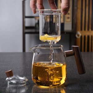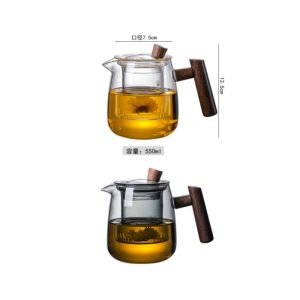 This exquisite teapot is crafted from high-quality borosilicate glass, celebrated for its exceptional durability and resistance to thermal shock, ensuring it is perfectly suited for stove use. The transparent glass construction allows you to witness the mesmerizing transformation of blooming tea as it gracefully unfurls, providing not just a delightful beverage but a visual treat. The included glass infuser guarantees that your tea is brewed to perfection, delivering a rich and flavorful cup every time.Find more cast iron tea cup.Beyond its functionality, this teapot is a testament to refined design. The sleek, contemporary aesthetic is complemented by sophisticated wooden accents on the handle and lid, making it a stylish addition to any kitchen or dining room. The handle, crafted from high-quality wood, provides a comfortable and secure grip, enhancing your tea brewing experience. Its compact 18.6 Fl Oz size is ideal for individual use or for serving small gatherings, offering just the right amount of tea without occupying excessive space. This makes it a versatile piece, whether you’re enjoying a quiet moment alone or hosting an intimate tea party.Find more cast iron tea cup.