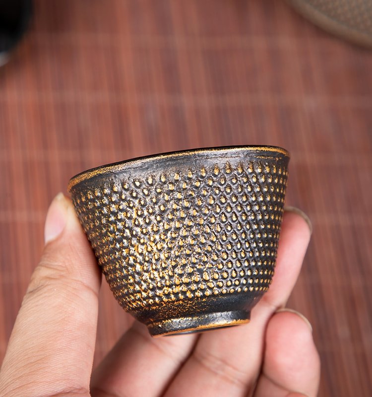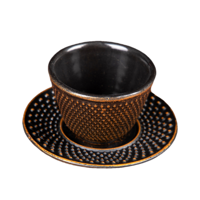 The design philosophy behind this tea cup set focuses on blending functionality with artistic expression. The particle texture on the exterior adds a unique aesthetic appeal, while the 2.4 Fl Oz/70 ML size is perfect for enjoying a variety of teas, from delicate green teas to robust black teas. The balanced weight and comfortable grip make this tea cup a joy to use, enhancing your overall tea-drinking experience. Whether you are hosting a formal tea ceremony or enjoying a quiet moment of relaxation, the Black and Gold Particle Cast Iron Tea Cups with Saucer add a touch of sophistication to any setting. Its elegant design and superior craftsmanship make it an ideal gift for tea lovers, as well as a stylish addition to your own collection.Find more tea cup and saucer set.