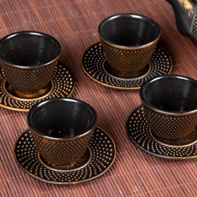 • 2.4 Fl Oz/70 Ml Black And Gold Particle Cast Iron Coffee Tea Cups Set
