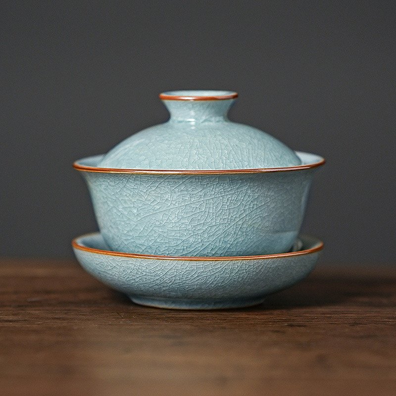 Crafted from high-quality Dehua porcelain, this gaiwan is designed for both aesthetic appeal and practical functionality. The 3.38Fl Oz/100ml capacity is perfect for enjoying a wide variety of teas, allowing for precise control over the brewing process. The thoughtful design includes a lid, bowl, and saucer, ensuring optimal heat retention and an elegant serving experience. The gaiwan’s compact size makes it easy to handle, and its smooth, glazed surface is not only beautiful but also easy to clean. The crackled glaze finish gives each piece a unique appearance, adding a touch of individuality to your tea set. This gaiwan tea cup is not just a practical tool for tea preparation; it is also a piece of art that reflects the rich heritage of Chinese ceramics. The Ru Kiln technique, with its origins dating back to the Song Dynasty, is renowned for producing porcelain with a jade-like quality. The delicate blue ice flower pattern on this gaiwan pays homage to this historical craft, while its modern design elements ensure it fits seamlessly into contemporary settings. Whether you are a seasoned tea connoisseur or a newcomer to the world of tea, the Blue Ice Flower Crack Ru Kiln Dehua Porcelain Gaiwan Tea Cup offers a perfect blend of tradition and modernity.Find more tea serving trays.