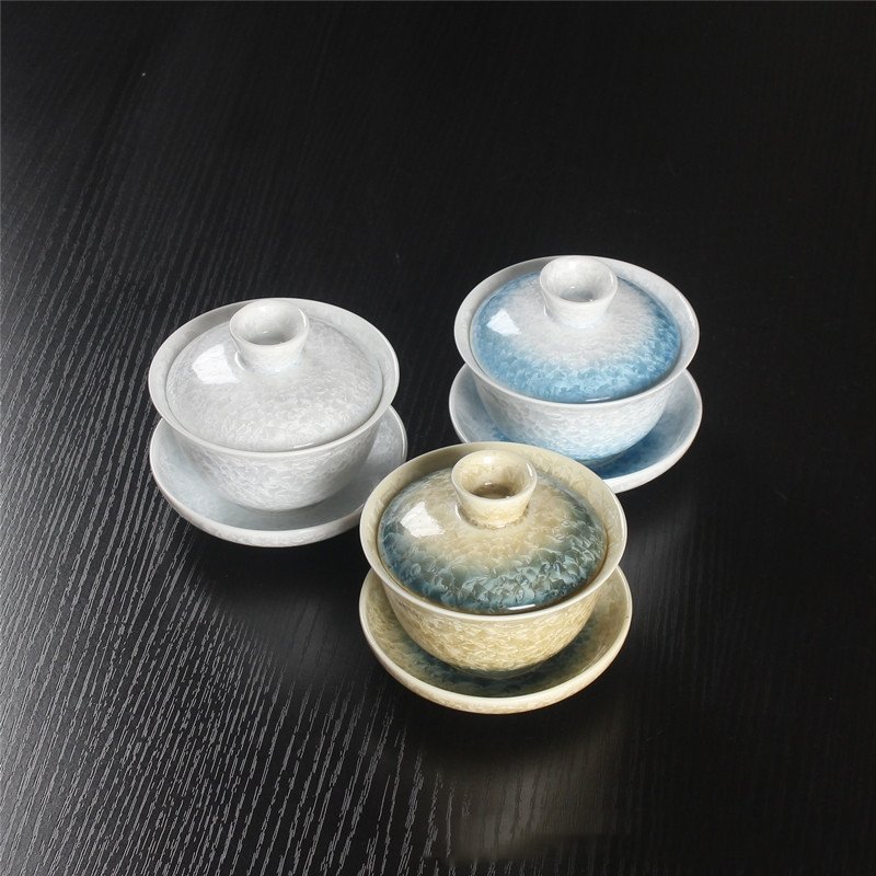 3.71Fl Oz/110ml Crystalline Glaze Gradient Yellow Round Gaiwan.The set available in 3 colors: Green, Yellow and White. The capacity of the cup is 110ml (3.71 fl oz),width 8.3cm, height 7.8 cm.Find more automatic tea sets.
