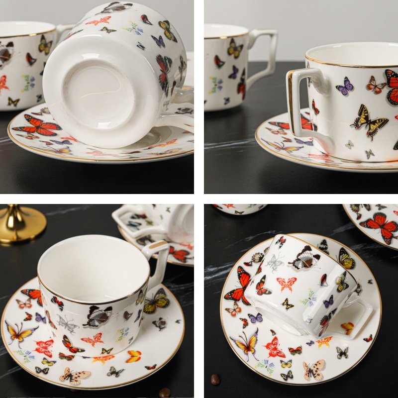 The ergonomic handles of the cups are designed for comfort, allowing for a secure grip. The matching saucers are perfectly sized to prevent spills, adding to the overall elegance of the set. Whether you are hosting an afternoon tea party or enjoying a quiet moment alone, this set brings a touch of nature’s beauty to your table. Our Hand Painted Butterfly Fine Bone China Tea Cups and Saucers Set also makes an exceptional gift for tea lovers and collectors. The unique hand-painted designs and premium quality make it an ideal choice for birthdays, anniversaries, and other special occasions. Surprise your loved ones with a gift that combines artistry and functionality. Elevate your tea experience with our 6.8 Fl Oz/200 ML Hand Painted Butterfly Fine Bone China Tea Cups and Saucers Set.Find more glass tea mugs.