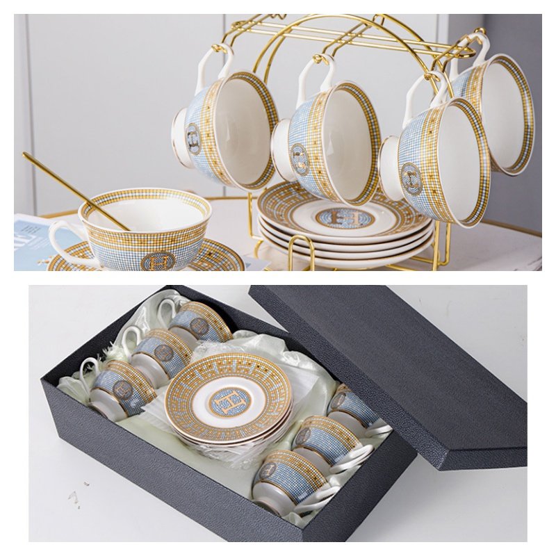 The set available in 6 cups, 6 saucers and 6 spoons. The capacity of the cup is 200ml (6.8 fl oz),width 12.5cm, height 6cm. The diameter of the Saucer is 15cm.Find more travelling tea sets.