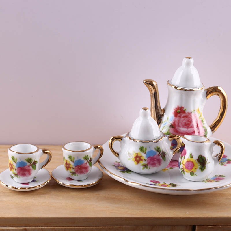 1 review for 8 Pcs/Set Antique Rose Flower Miniature Porcelain Dollhouse Coffee Tea Set