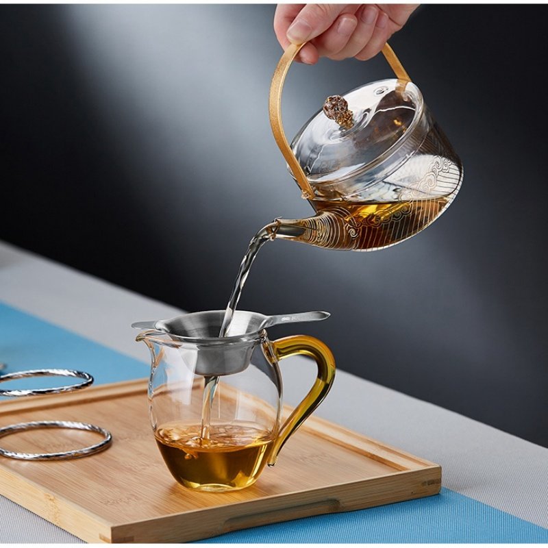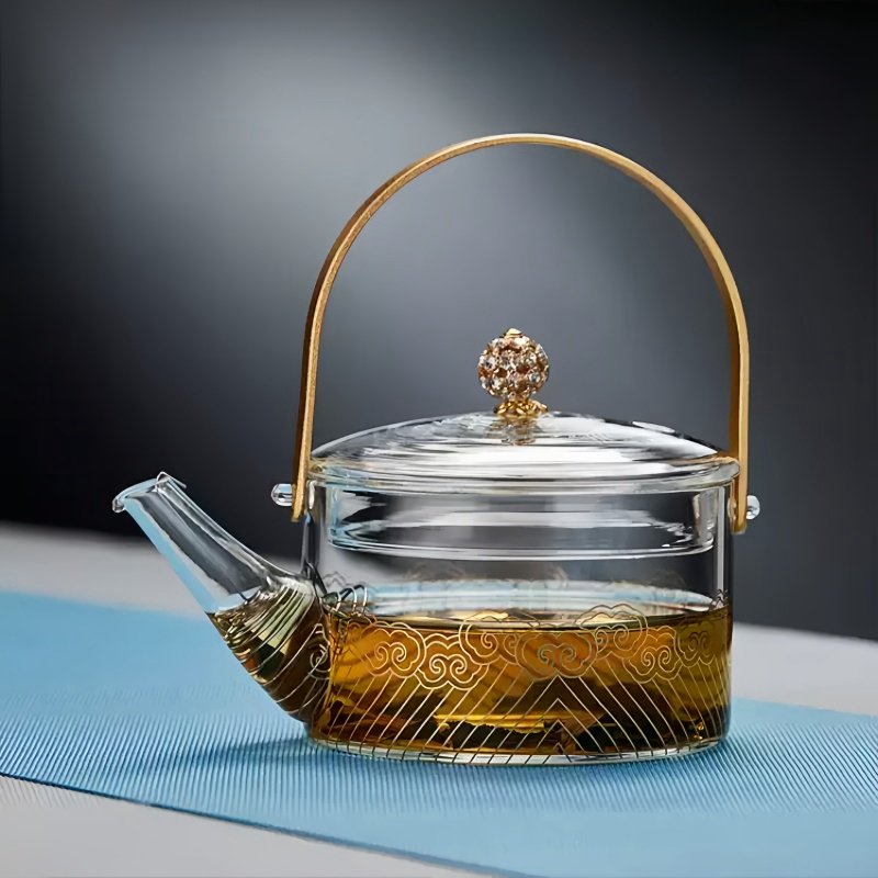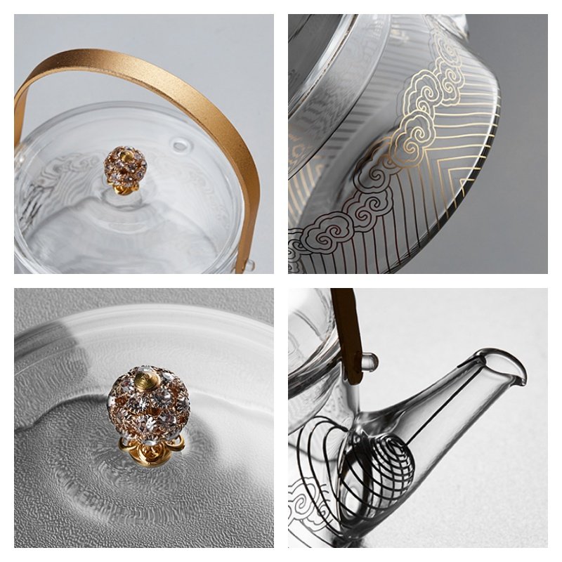 Crafted from premium lead-free high borosilicate glass, this 9.5 Fl Oz Small Auspicious Clouds Heat Resistant Glass Teapot is expertly designed to withstand high temperatures, making it an ideal vessel for steeping your favorite hot beverages. The teapot showcases a beautifully etched auspicious clouds pattern, enhancing its aesthetic appeal while adding a tranquil touch to your tea rituals. The design is not only visually appealing but also serves as a serene backdrop that enriches the tea-drinking experience. An integrated 304 stainless steel strainer within the spout ensures a smooth, clear pour every time, efficiently filtering out loose tea leaves and providing the purest infusion of flavors. Furthermore, the wide mouth of the teapot simplifies the cleaning process, allowing you to maintain its pristine condition with minimal effort. Whether you’re rinsing between uses or doing a deep clean, this design detail makes upkeep a breeze. This teapot is more than just a functional item; it features a heat-resistant alloy handle that provides a comfortable and safe grip, protecting your hands from heat and preventing any burns while handling hot liquids.Find more Japanese tea cups.
