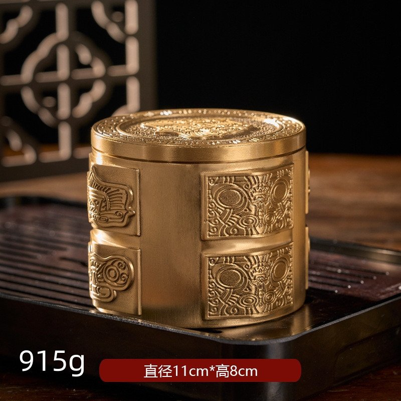 The specification of the Antique Metal Chinese Brass Loose Leaf Tea Container are: 11 cm*8 cm, 31.1 fl oz.