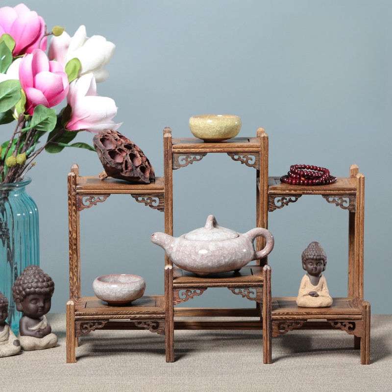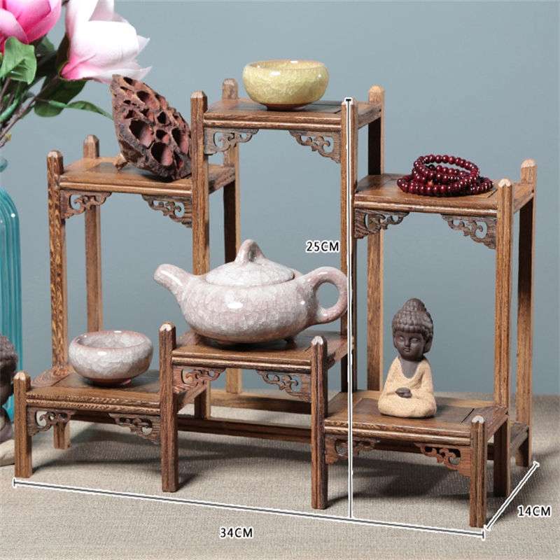 Antique Wooden Tea Cup Display Stand And Tea Shelf, featuring dimensions of 34*14*25 cm .