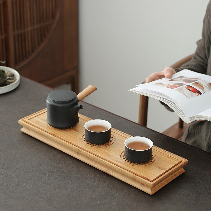 Bamboo Tray for Serving Tea Suitable for One Teapot and Two Cups