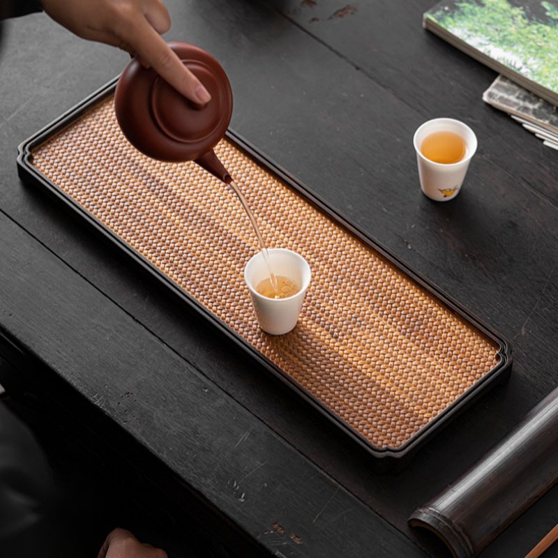 Immerse yourself in the elegance of traditional Chinese tea culture with the Traditional Chinese Bamboo Woven Gongfu Tea Cup Tea Tray. This beautifully crafted tea tray features a hand-woven bamboo surface, capturing the essence of simplicity and nature. The intricate weaving not only adds to its visual appeal but also provides a sturdy surface for your teaware. Designed to elevate your Gongfu tea rituals, this tray combines functionality with classic craftsmanship, making it an essential piece for tea enthusiasts who value both tradition and artistry. The tray is made from high-quality bamboo, known for its strength and durability. The woven bamboo surface is framed by a solid wood border, providing stability while highlighting the natural texture of the bamboo. Its smooth finish and rounded edges make it easy to handle and a pleasure to use during tea sessions. The woven design also helps with natural drainage, ensuring that your tea area remains neat and organized.