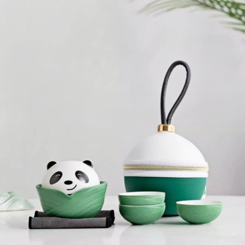 • Best Cute Panda Theme Ceramic Portable Travel Tea Container Kit For One