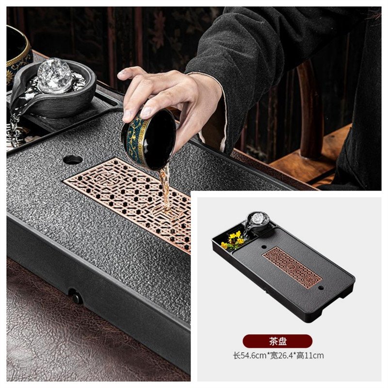 The tea set is crafted from premium ceramic and adorned with a luxurious black glaze, which highlights the intricate tangled branches pattern, offering a striking visual contrast that blends both tradition and innovation. The teapot itself draws inspiration from the design of a classic stone mill, adding a rustic yet refined touch to the ensemble. The large-capacity design of the pot and cups ensures that there is plenty of tea to go around, facilitating both preparation and cleanup with minimal effort.Complementing the tea set is a beautifully designed tea tray, which features a hollowed-out floral pattern. This thoughtful detail not only adds a layer of elegance but also serves a functional purpose by aiding in water drainage. The tray’s dual functionality allows it to store excess water or be connected to a drain hose, making cleanup a breeze. This combination of aesthetic appeal and practical design makes the tea set not just a functional tool, but a centerpiece that invites admiration and sparks conversation.Find more Japanese teapot set.