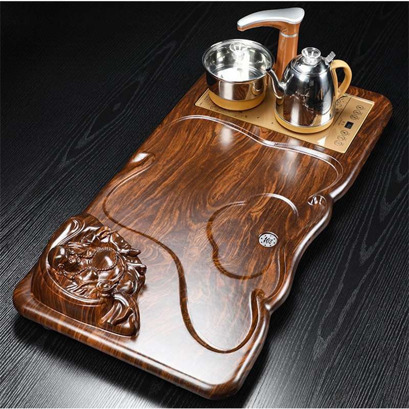 This exquisite tea set, inspired by the serene presence of Buddha, features a meticulously crafted wooden tray that showcases intricate carvings, creating a tranquil tea-drinking experience. The set includes a stainless steel electric teapot furnace, ensuring a consistent and efficient heating process, making your tea preparation both effortless and enjoyable. The elegant combination of traditional aesthetics and modern functionality provides a perfect balance for tea enthusiasts who seek both beauty and efficiency in their tea rituals.Find more Gongfu tea cups.