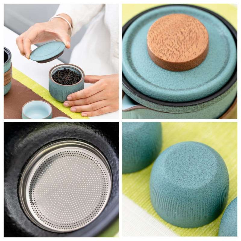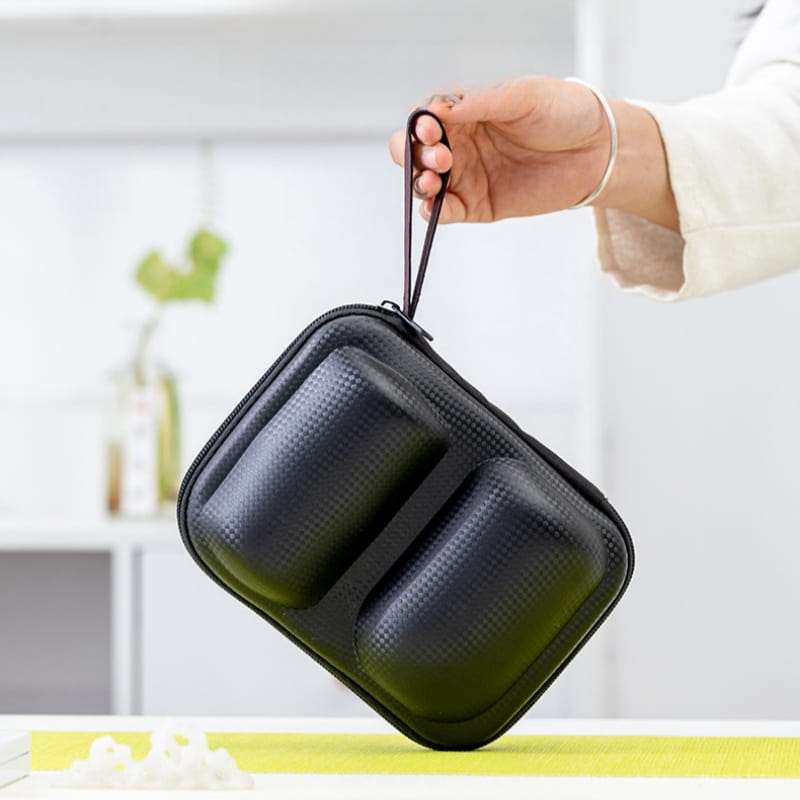 This travel tea set is designed to elevate your tea drinking experience with its practical features. It includes a durable stainless steel infuser that reaches deep into the teapot, ensuring a full and even steeping of your favorite loose-leaf teas. The smooth pouring spout is engineered to deliver a continuous stream of tea, making every pour effortless and precise. Additionally, the set’s non-woven cloth stopper ensures excellent sealing properties, keeping your tea hot and flavorful. The tea set’s portability is further enhanced by a sturdy zippered case, which securely houses each component, providing both protection and easy transport. The case also features specialized compartments for each component of the tea set, ensuring that they remain secure and organized. This meticulous attention to detail in both the design and functionality of the travel tea set makes it an indispensable accessory for any tea enthusiast.Find more Chinese teapots.