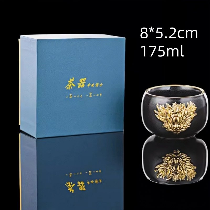 Ceramic Year Of The Dragon Gold Rim Tenmoku Glaze Jianzhan Tea Cup With Gilded Dragon Head Figurine,, featuring dimensions of 8*5.2cm and a capacity of 175 milliliters.Find more yixing purple clay tea cups.