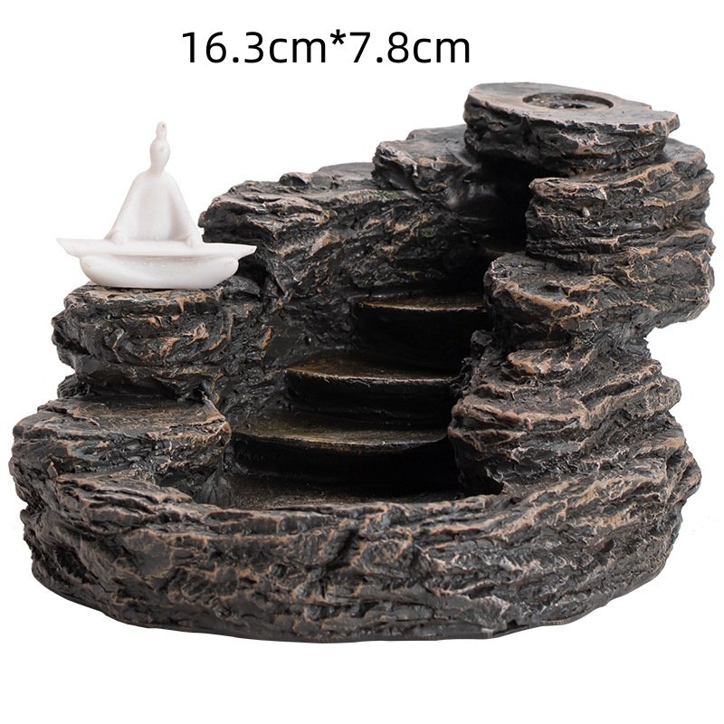 This incense burner features a meticulously detailed mountain path design, capturing the serene beauty of nature in its intricate carvings. When the incense cone is lit, the smoke cascades down the steps of the path, creating a soothing waterfall effect that is both visually captivating and calming. The combination of the flowing smoke and the rustic, natural design makes this burner a perfect addition to any home decor.