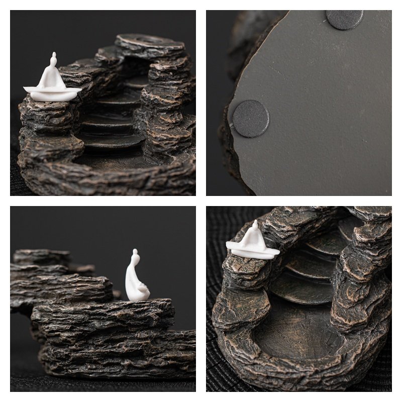Made from high-quality materials, this incense burner is not only aesthetically pleasing but also highly functional. The sturdy construction ensures durability, while the non-slip footpads at the base provide stability and protect your surfaces from scratches. The bottom of the burner is finely polished, adding to its overall elegance. Whether placed in your living room, study, or meditation space, the Chinese Mountain Path Reverse Backflow and Waterfall Fountain Incense Burner adds a touch of sophistication and serenity.