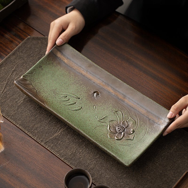 The craftsmanship behind this piece reflects centuries of skill and dedication. Made from high-quality materials, it combines durability with an artistic flair. Each piece is fired in a kiln, which creates subtle variations in color and texture, making every tray unique. The floral motif on the tray, carefully hand-carved, symbolizes beauty and elegance, further enhancing the visual appeal of the piece. This serving tray is not just a functional accessory; it’s a work of art. The integration of modern needs with ancient design principles creates a versatile piece that fits seamlessly into both contemporary and traditional settings. Ideal for tea lovers who appreciate both form and function, it also makes for an exceptional gift for those who admire Chinese culture and tea rituals. Whether displayed on its own or used in daily tea practices, the Chinese Style Antique Kiln Gongfu Tea Set Serving Trays with Water Drains is an essential addition to your tea collection. Its timeless design and practical features make it a beautiful and valuable piece for any tea connoisseur.