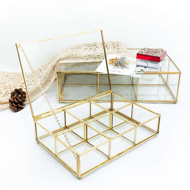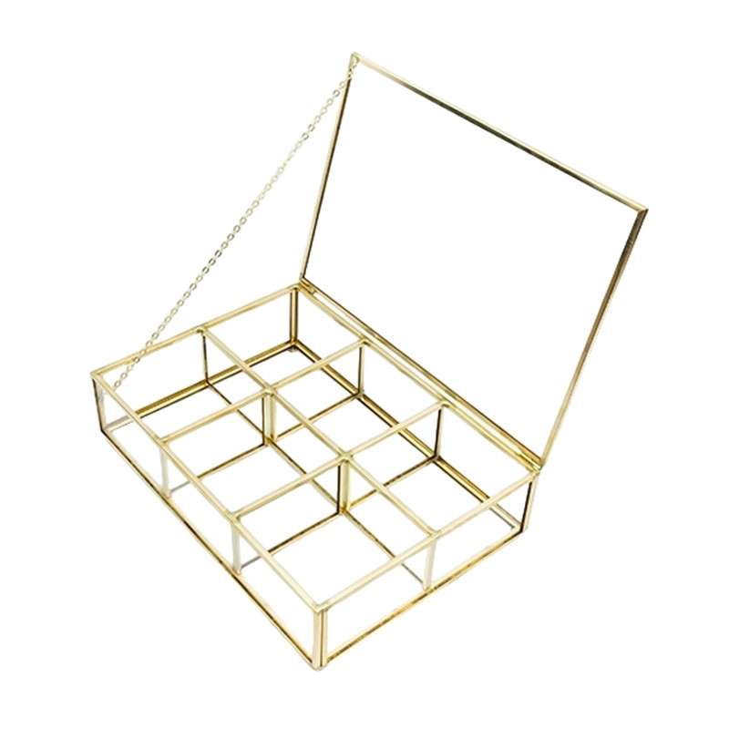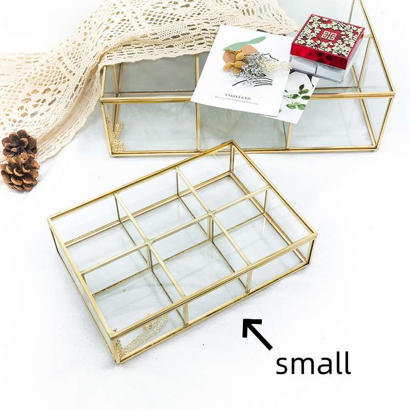 The Clear Copper and Glass Tea Bag Holder Chest Organizer and Storage Box is available in two sizes: Small (23 cm*16 cm*6 cm), Large (34 cm*23 cm*10 cm).