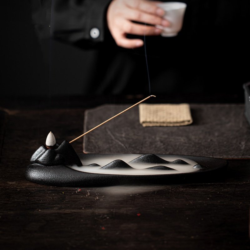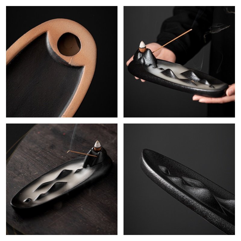 Crafted from high-quality raw clay and fired at high temperatures, this burner features a unique mountain design with a textured matte finish that exudes elegance and stability. When the incense cone is lit, the smoke flows gently down the mountain, mimicking the movement of clouds over a landscape, creating a mesmerizing and calming visual effect. This piece is perfect for enhancing the ambiance of your living room, study, or meditation area.