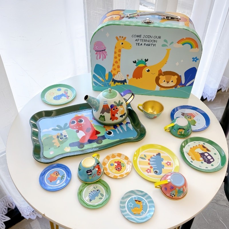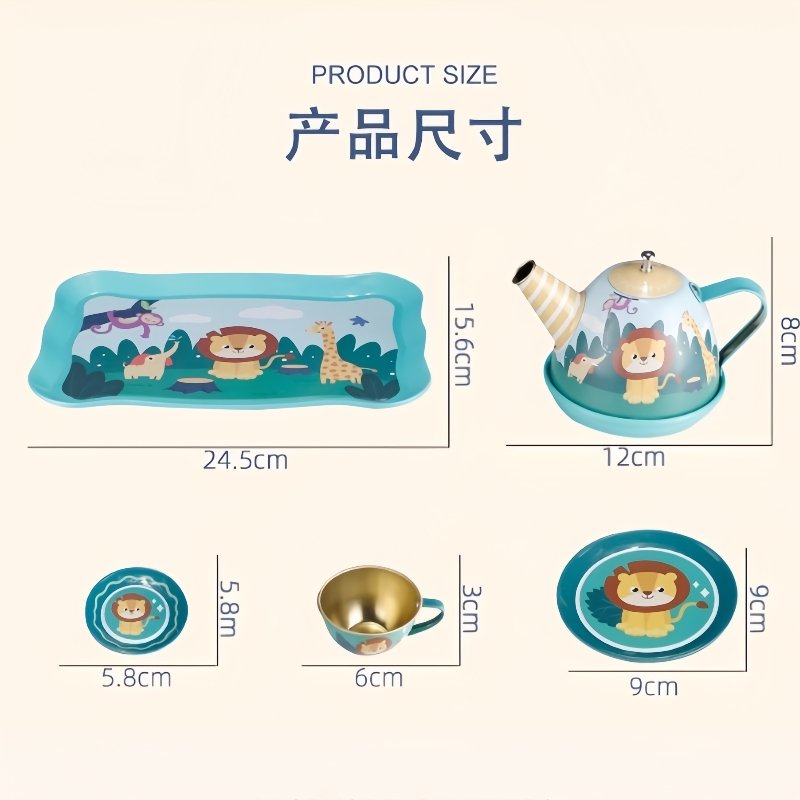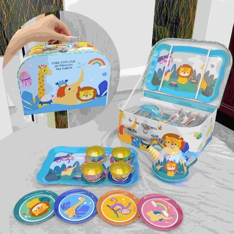 These Cute Animals Tinplate Metal Child Tea Gift Sets for Kids with Zoo Patterns feature a delightful array of zoo animal patterns, adorned with vivid depictions of lions, giraffes, octopuses, and more, capturing the vibrant and educational essence of a day at the zoo. The colorful characters are expertly printed on each piece, bringing a joyful and engaging atmosphere to every tea party. Crafted with care from sturdy tinplate, these sets are built to endure the rough and tumble play that comes naturally to young children, ensuring durability and safety. Each component of the set, from the cups to the teapot, is constructed to be both functional and child-friendly, with rounded edges and lightweight design to fit little hands perfectly. The tinplate material also guarantees that the set is free from any harmful chemicals, making it a safe choice for children of all ages.Find more tea cup and saucer set.