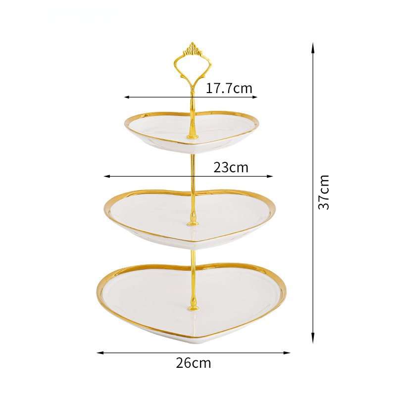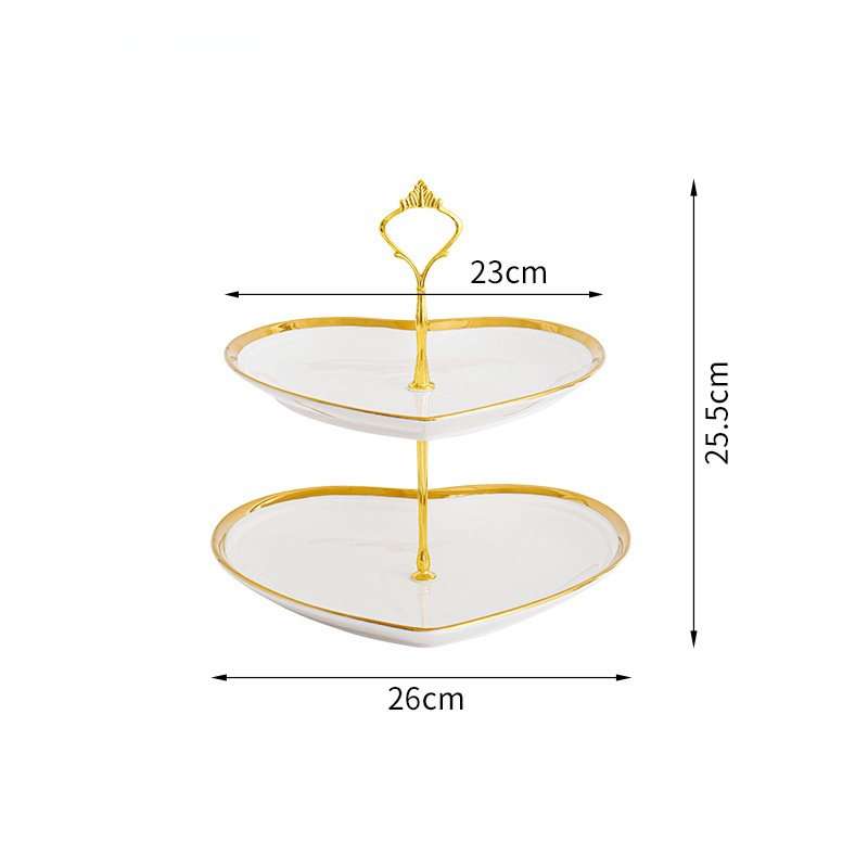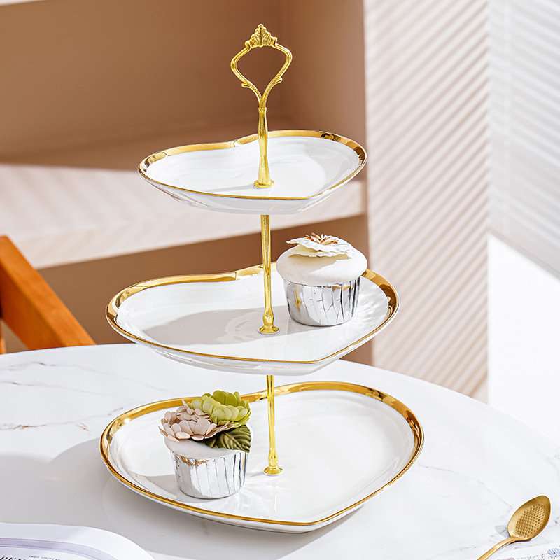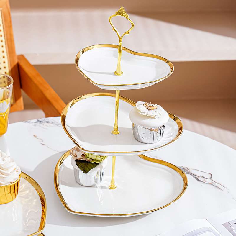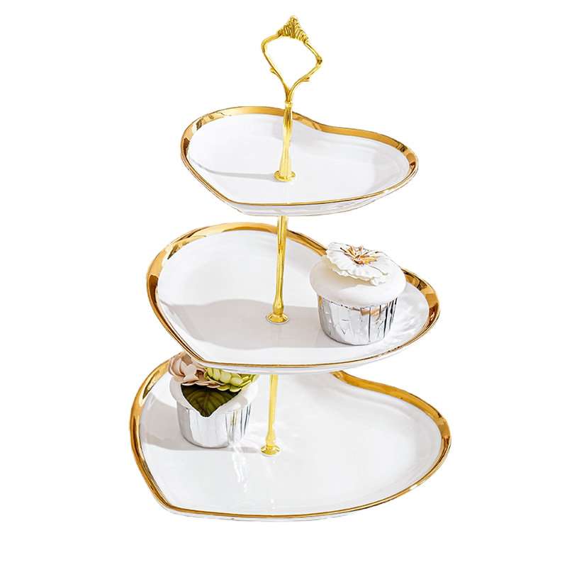 Expertly crafted from high-temperature fired ceramic, this DIY Heart-shaped Ceramic Modern Afternoon High Tea Party Cupcake Stand 2-3 Tier features a gentle, smooth surface that is both delightful to touch and easy to clean. Each tier is adorned with hand-painted gold edges that highlight the exquisite craftsmanship and enduring quality of the materials. The heart-shaped plates add a touch of romance and uniqueness to your display, making it an eye-catching centerpiece for serving cupcakes, desserts, or even fruits.
