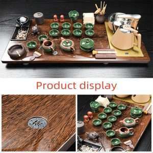 The Embossed Cracked Ceramic Kung Fu Tea Set with Wooden Tea Tray and Stainless Electric Teapot with Embedded Temperature Control includes a sleek wooden tea tray that serves as a spacious and organized platform for your tea ceremony. Crafted from high-quality wood, the tray is not only functional but also adds a rustic charm to your setup. The stainless electric teapot is a marvel of modern technology, equipped with advanced temperature control to ensure your water is always at the perfect brewing temperature. Its 1350W circular heating element allows for rapid boiling, so you can enjoy your tea without long waits. Additionally, the teapot features an anti-scald design with double-layer insulation, ensuring safety and convenience with every use.This Embossed Cracked Ceramic Kung Fu Tea Set with Wooden Tea Tray and Stainless Electric Teapot with Embeded Temperature Control is perfect for tea enthusiasts who appreciate a blend of traditional aesthetics and modern functionality. The thoughtful design of the cups and teapots, combined with the practicality of the wooden tray and the efficiency of the electric teapot, creates a harmonious balance between form and function.Find more glass teapots with infusers.
