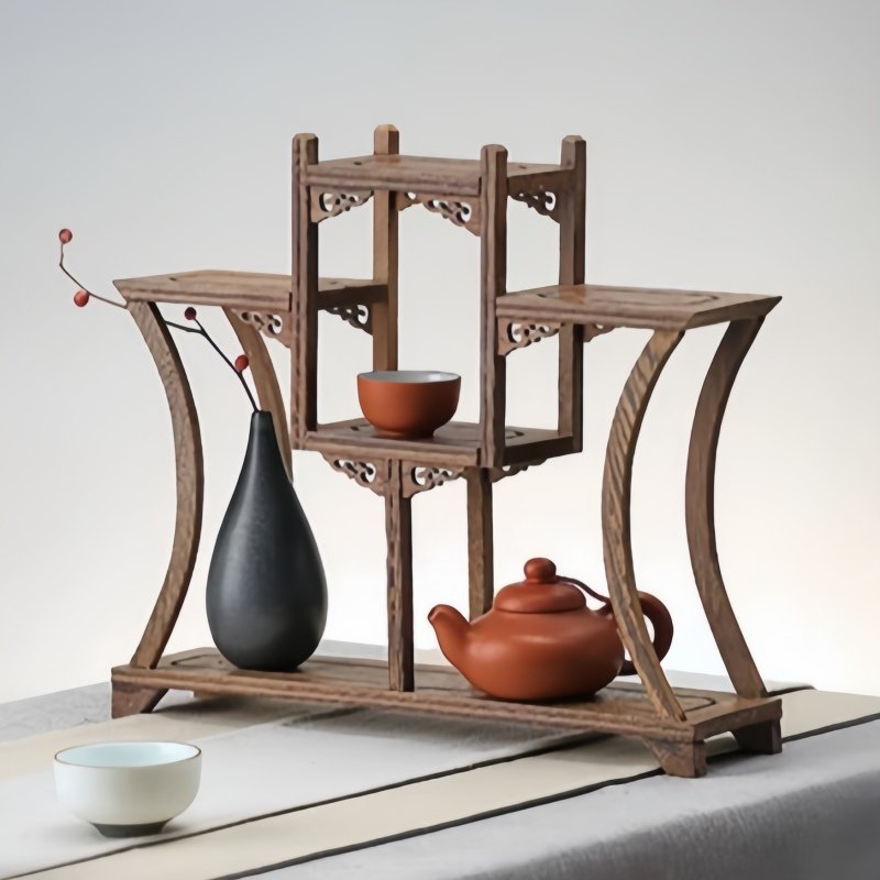 Innovative Wooden Moon Tea Cup Tea Set Display Holder Stand.The Innovative Wooden Moon Tea Cup Tea Set Display Holder Stand is a masterpiece that effortlessly combines elegance with practicality. Designed for tea enthusiasts and collectors, this display stand brings both artistic beauty and functional organization to your space. The moon-inspired design creates a striking focal point in any room, offering a sophisticated touch that complements both modern and traditional interiors. The smooth, curved lines of the moon shape not only draw the eye but also symbolize harmony and balance, bringing a serene ambiance to your tea corner, living room, or office. Crafted from high-quality wood, this stand features a meticulous design that emphasizes natural textures, making it an ideal choice for anyone seeking to add a touch of refinement to their home decor.The stand’s design is as much about aesthetic appeal as it is about functionality. Featuring multiple shelves, it provides plenty of space to display teacups, teapots, and other tea accessories. The open structure of the display stand ensures that your tea essentials are easily accessible, making it an ideal addition to a tea corner or bar area. Each shelf has been thoughtfully spaced to offer enough room for a variety of items while maintaining a tidy and organized look. The unique moon shape brings a sense of fluidity and movement to the design, giving the display an elegant, modern touch.