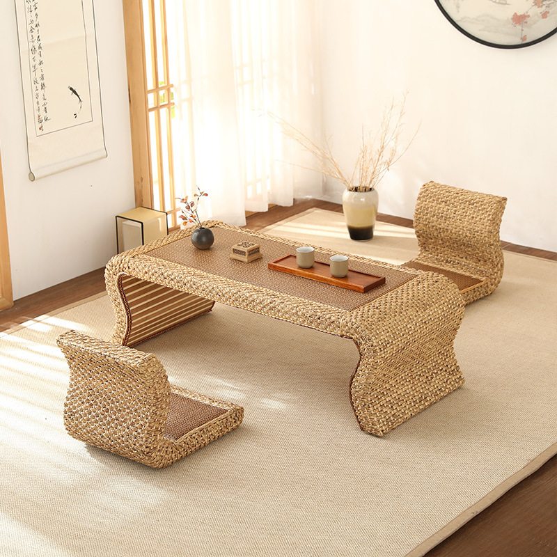 Each piece in this set is handcrafted by skilled artisans, preserving the authenticity and charm of traditional Japanese design. The natural finish of the rattan enhances the table’s rustic appeal, making it a versatile piece that complements both traditional and modern interiors. Whether you’re hosting a formal tea ceremony or enjoying a quiet moment alone, this table set provides a perfect setting for reflection and connection. The Japanese Antique Style Rattan Low Tea Ceremony Table Furniture is more than just a piece of furniture; it’s an invitation to experience the grace and simplicity of Japanese culture. This set is ideal for those who value tradition and craftsmanship, offering a unique blend of beauty and functionality that will enhance any home.