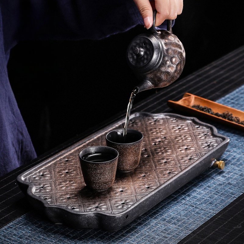 This Japanese style tray is crafted from premium materials, ensuring both durability and a timeless aesthetic. The combination of the iron glaze and daisy theme represents the harmonious balance between nature and artistry. Its intricate design provides an aesthetically pleasing backdrop for your Gongfu tea set, making each tea session a celebration of craftsmanship and tradition. The tray’s moderate size makes it versatile for various tea setups, whether you’re serving a small gathering or enjoying tea alone. Its understated elegance and practical functionality make it suitable for both formal and casual tea ceremonies. The water drainage system keeps the surface dry, protecting your teaware from moisture damage, and ensuring a smooth, uninterrupted tea experience. With the Japanese Style Iron Glaze Daisy Theme Gongfu Tea Serving Tray, you can elevate your tea rituals to new levels of serenity and beauty. This tray is an ideal addition to any tea enthusiast’s collection, bringing both form and function to your tea ceremonies.