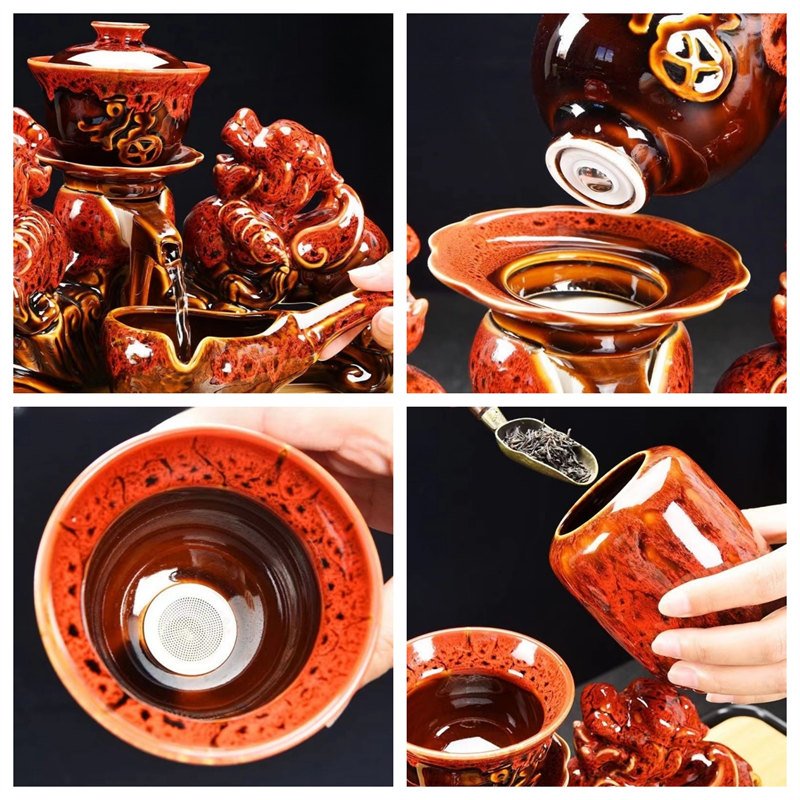 This Kiln Change Colorful Glaze Ceramic Automatic Lazy Teapot and Cup Set combines traditional craftsmanship with modern functionality, designed to make every tea session a delightful ritual. The unique kiln change glaze ensures that each piece boasts a distinct and vibrant pattern, making every set a one-of-a-kind treasure. The automatic pouring mechanism offers convenience and precision, allowing you to enjoy your tea without the fuss of manual brewing. Whether you are a seasoned tea connoisseur or a casual drinker, this set promises to enhance your tea moments with both style and ease.Find more Chinese chawan.