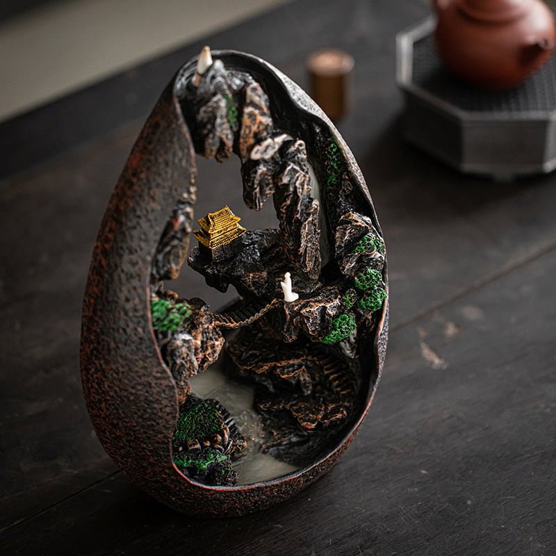 This incense burner, crafted from premium resin, features a deeply carved Buddha figure that exudes a sense of ancient tranquility and wisdom. The Buddha’s serene expression and detailed carving make this piece not just a functional item, but a striking decorative element. As incense burns atop the structure, the smoke gently cascades down the intricately detailed backdrop, creating a mesmerizing waterfall effect that resembles the slow and peaceful flow of time itself.
