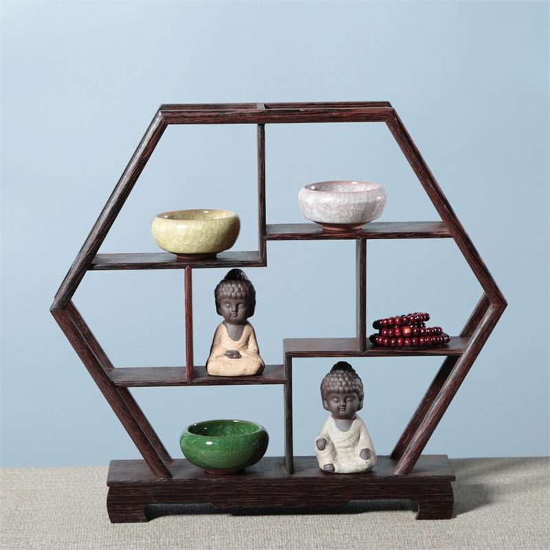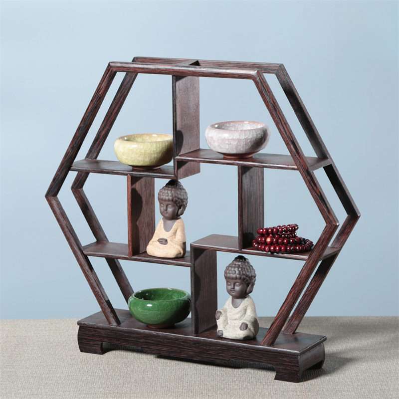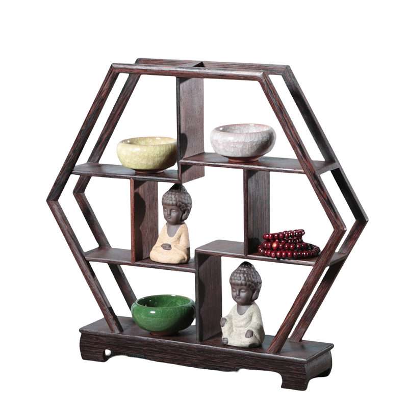 Large Hexagon Wooden Standing Display Shelf For Tea Cup And Mug, featuring dimensions of 30*6*28 cm .