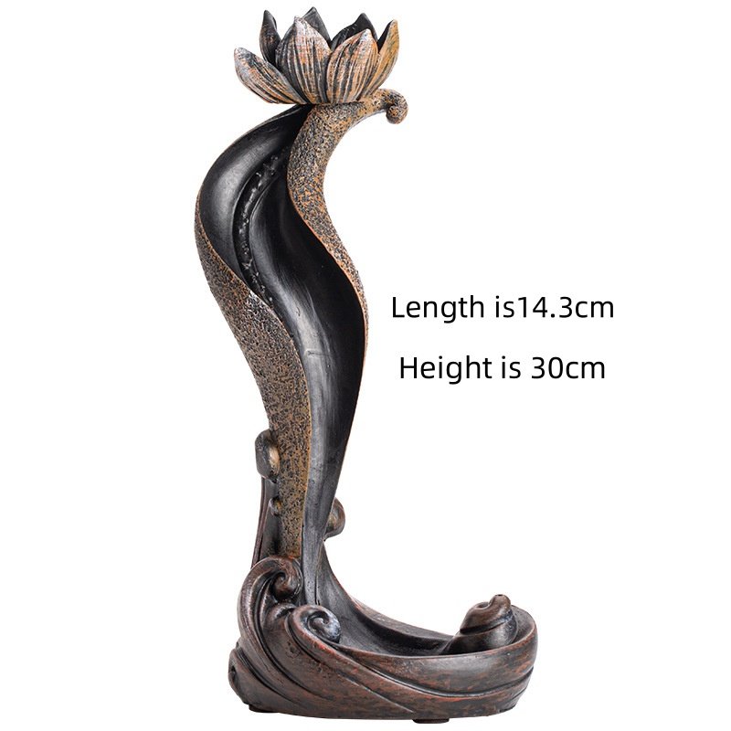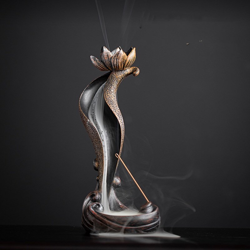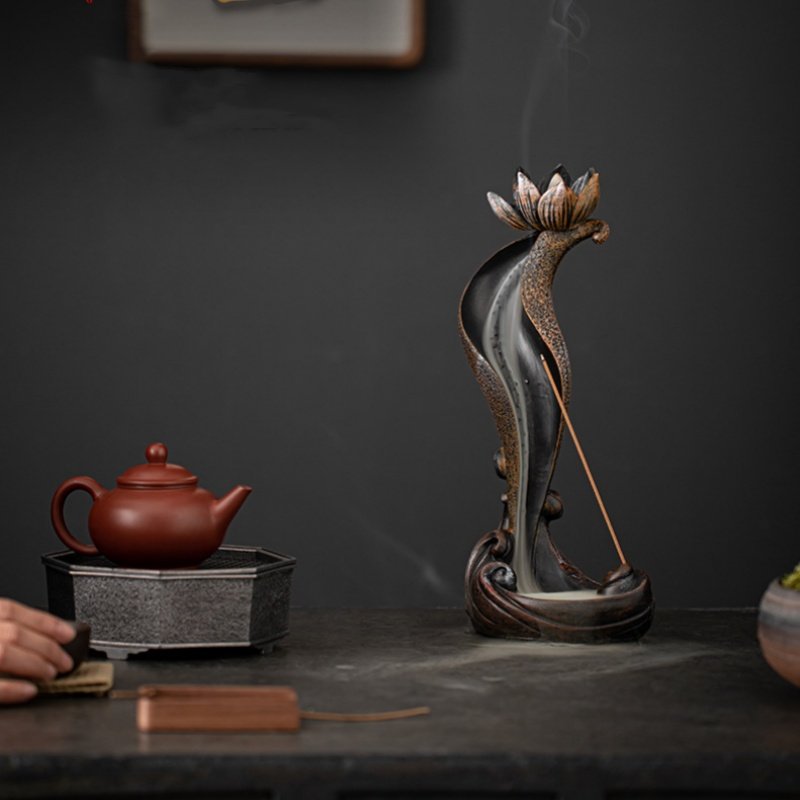 This beautifully crafted incense burner, made from high-quality resin, is designed to evoke a sense of timeless elegance and calm. The lotus, deeply engraved and perched elegantly at the top, symbolizes purity and enlightenment in many cultures, making this burner not just a functional item but also a symbolic one. As the incense burns, the smoke gracefully flows down in a backflow waterfall, mimicking a gentle stream that is both visually soothing and aromatic. The intricate cloud patterns carved around the lotus add a touch of refined sophistication, creating a mesmerizing visual that enhances any space it occupies.