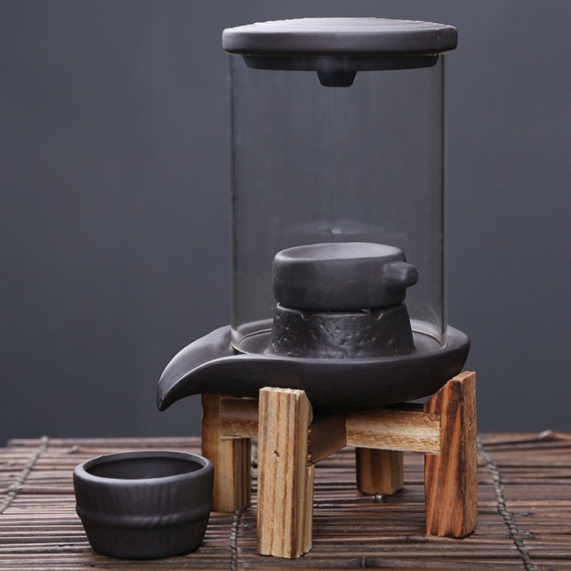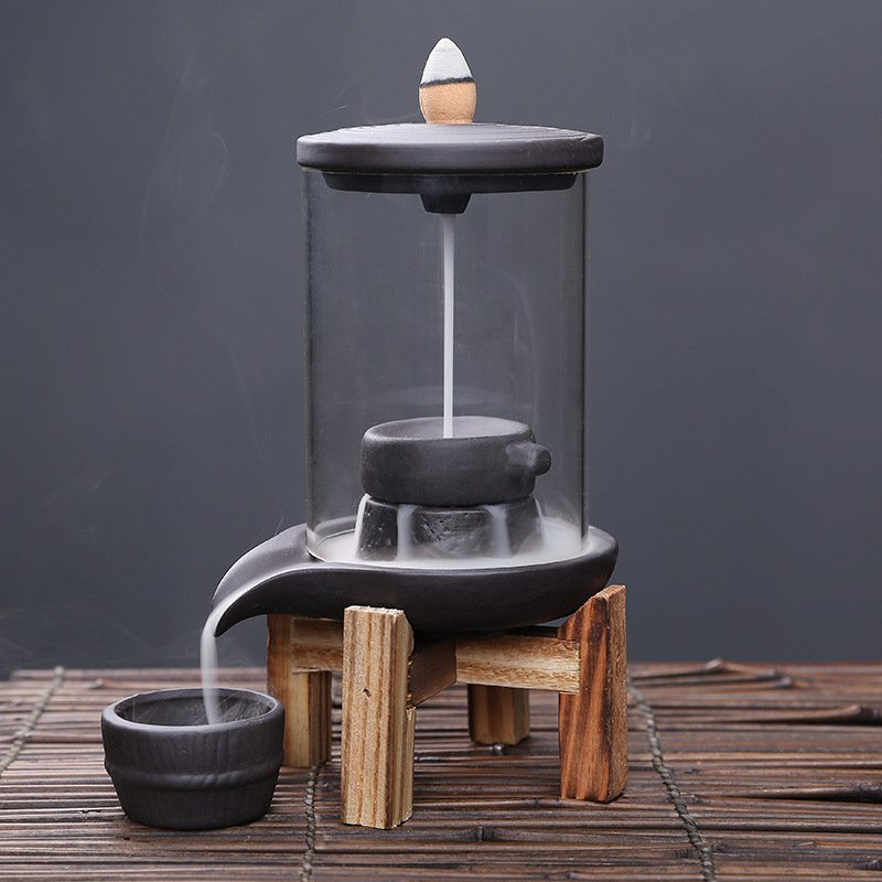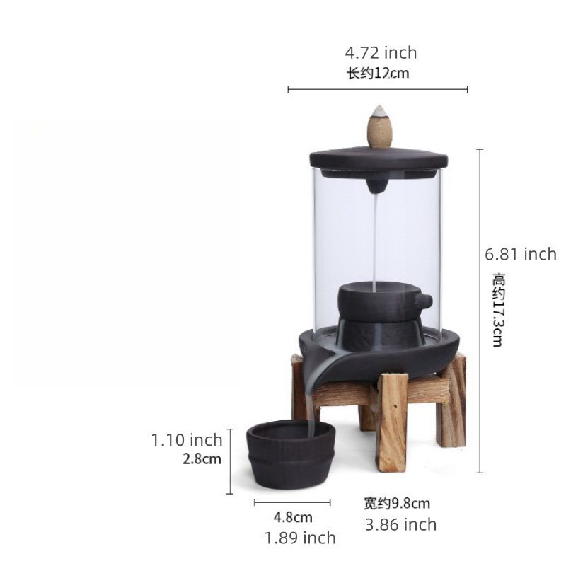 This incense burner is meticulously crafted from high-quality purple clay, emphasizing a smooth finish that enhances the flow of smoke, mimicking a gentle waterfall. The intricate design includes a millstone base complemented by a solid wood stand, providing stability and a rustic aesthetic. The acrylic cover not only protects the incense burner but also elegantly displays the mesmerizing smoke flow, making it a perfect addition to any meditation or relaxation area.