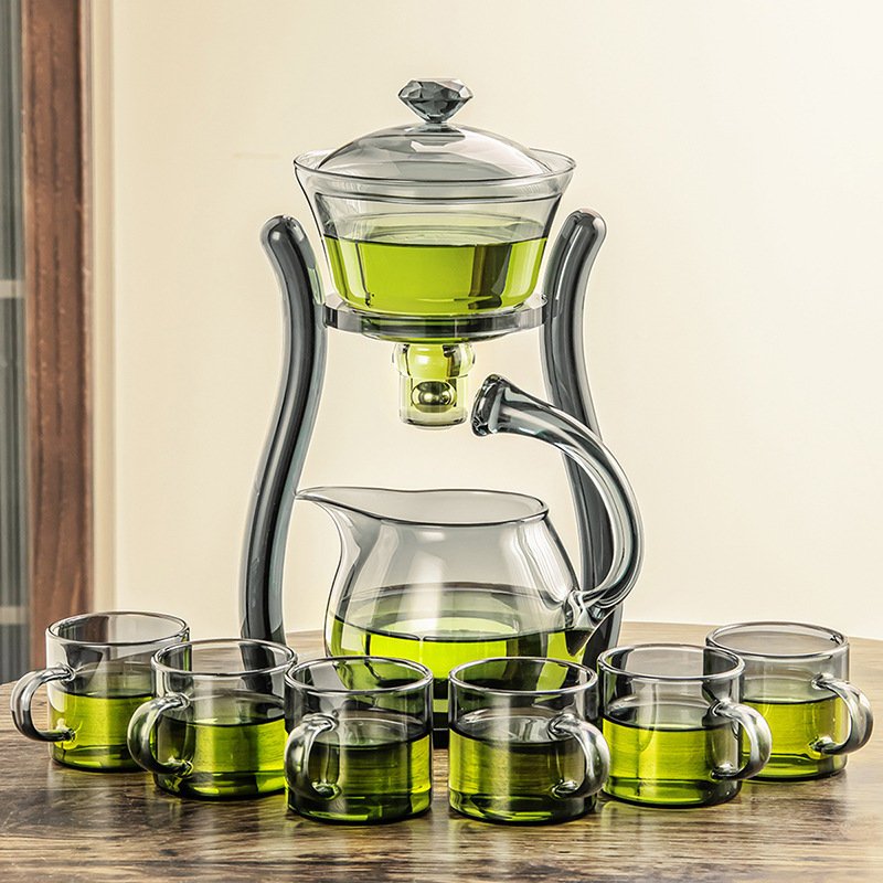 The ergonomic design of the fair cup ensures a comfortable grip and smooth tea pouring, thanks to its classic eagle-beak spout. This design not only adds an aesthetic appeal but also enhances the functionality by allowing precise control over the tea flow, preventing spills and drips. The fair cup, also known as a pitcher or sharing pot, is perfectly balanced to offer a steady and controlled pour, making it an ideal choice for both casual tea drinkers and connoisseurs.TheModern Simple Style Lazy Semi Automatic Glass Tea Set is designed for both functionality and ease of use. The stable base provides secure placement, preventing any accidental tipping or wobbling during use. This stability is particularly important when dealing with hot liquids, ensuring safety and convenience. Additionally, the detachable components make cleaning a breeze, preventing tea stains from lingering. Each part of the tea set can be easily disassembled, allowing for thorough cleaning and maintenance, which helps in preserving the set’s pristine condition over time.ThisModern Simple Style Lazy Semi Automatic Glass Tea Set is not only practical but also a beautiful addition to any modern kitchen or tea room, offering a seamless tea-brewing experience. Its sleek and sophisticated design complements contemporary decor, making it a perfect centerpiece for social gatherings or a quiet afternoon tea.Find more chinese tea cups.