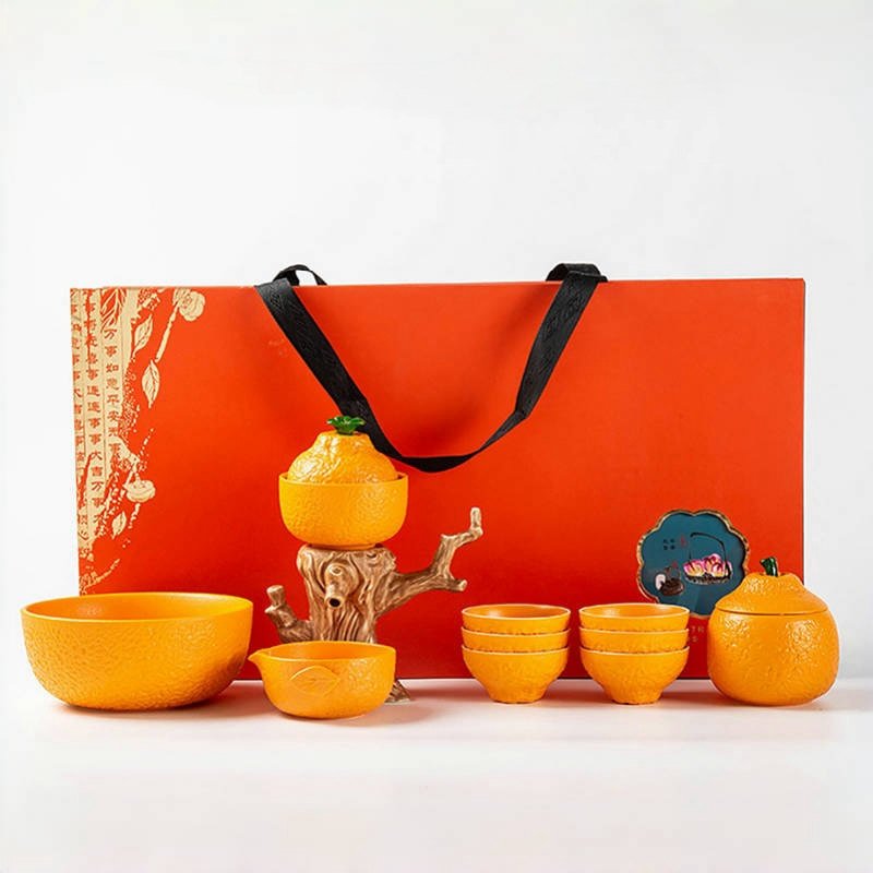One of the standout features of this teapot is its automatic water dispensing system. This innovative system is activated by a simple rotation of the handle to the left or right, making the process of pouring tea both convenient and efficient. This feature embodies the “lazy” aspect of the tea set, allowing you to enjoy your tea with minimal effort.The Orange Shape Ceramic Lazy Semi Automatic Tea Set also includes an ergonomically designed fair cup, which is an essential part of the traditional tea ceremony. The fair cup features a beak-shaped spout that ensures smooth and precise pouring, enhancing the overall tea-drinking experience. The attention to detail in the design of this cup is evident, making it both functional and aesthetically pleasing.Cleaning the tea set is a breeze, thanks to its detachable components. This thoughtful design prevents tea stains from accumulating, ensuring that your tea set remains pristine and hygienic with minimal effort. Additionally, the teapot lid features an orange leaf-shaped knob that not only adds to its whimsical design but also provides insulation to prevent burns when handling.Completing this charming set is the large orange-shaped tea canister.Find more tea serving trays.