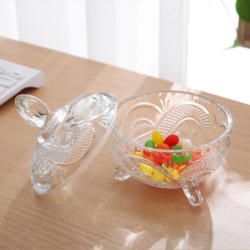 Personalized Dragon Design Glass M&M Christmas Candy Bar Jar Vintage Gift With Lid.This meticulously crafted glass jar is a true showstopper, featuring an elegant dragon-inspired design that adds a sophisticated yet unique touch to your home or event space. The dragon motif, etched with precision, embodies a sense of vintage charm and luxury, making it a standout decorative piece for any occasion. Made from durable yet lightweight glass, the jar is built to last while maintaining a refined aesthetic. The transparent design is not just beautiful but also practical, allowing the vibrant colors of candies, snacks, or decorative items to shine through, creating an eye-catching display. Its three-leg base ensures stability while adding a touch of old-world charm, and the delicately crafted lid keeps the contents fresh, protected, and ready to enjoy.