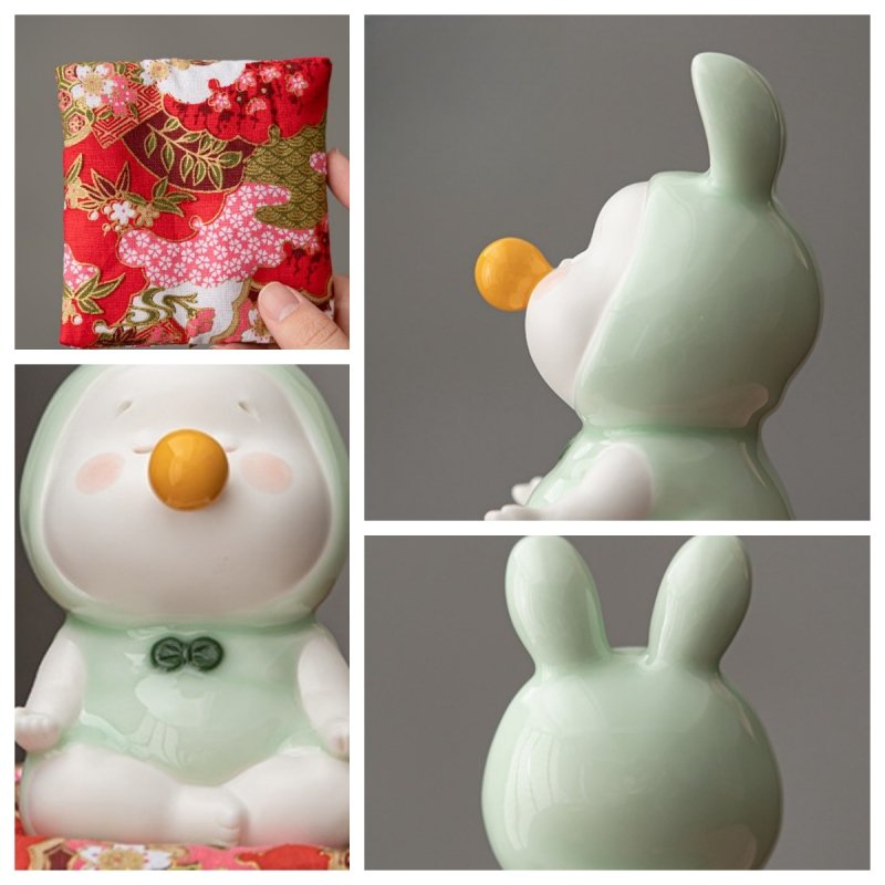 1 review for Personalized Traditional Ceramic Mini Cute Sit In Meditation Rabbit Tea Pet With Cushion