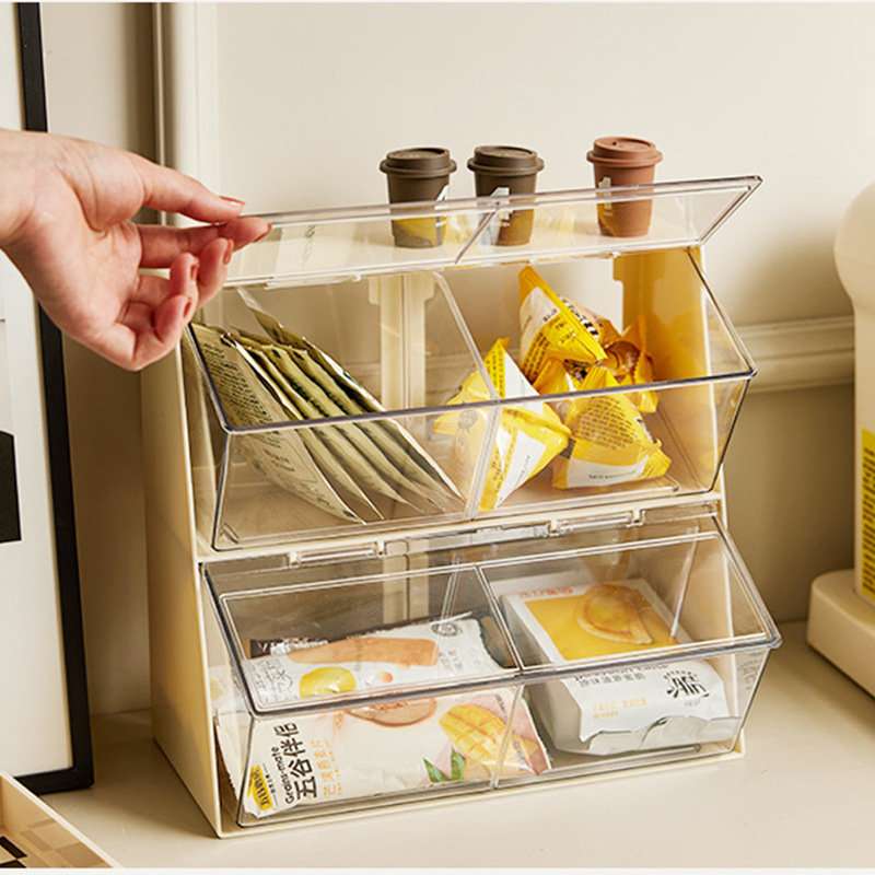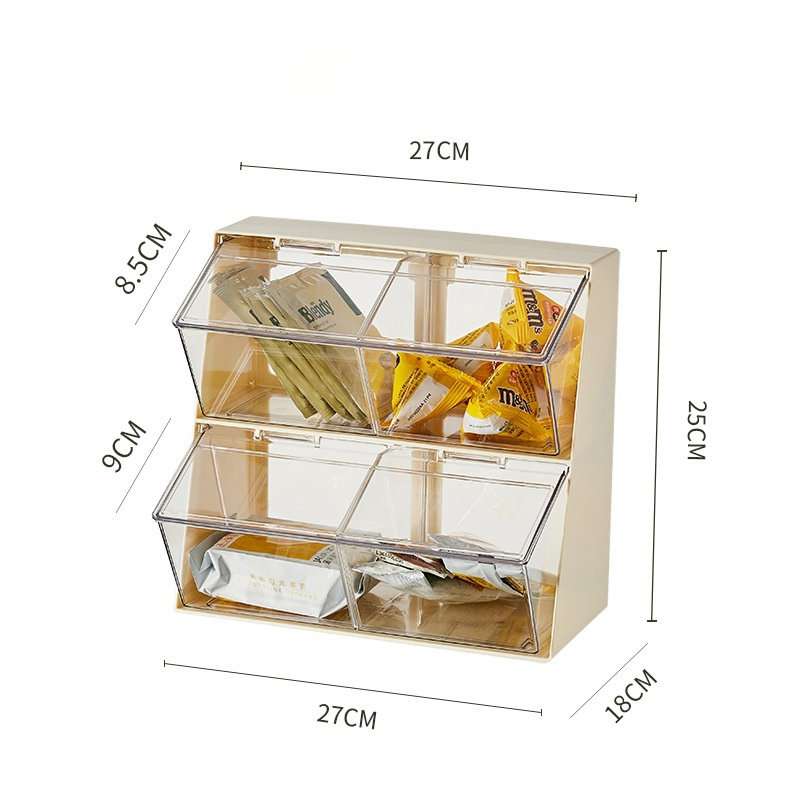 Moreover, the organizer features detachable sections that can be effortlessly assembled and disassembled, facilitating easy restocking and cleaning. It includes handy connecting clasps that allow for flexible combinations to suit any space or preference. The compartments are specifically designed to segregate items by type and flavor, which saves time and enhances organization. Made from selected high-quality materials that are safe for direct contact with food, this storage box ensures a healthy and safe environment for your consumables. Whether placed in a home kitchen or a professional café, this organizer serves as both a practical tool and a stylish addition to any setting.