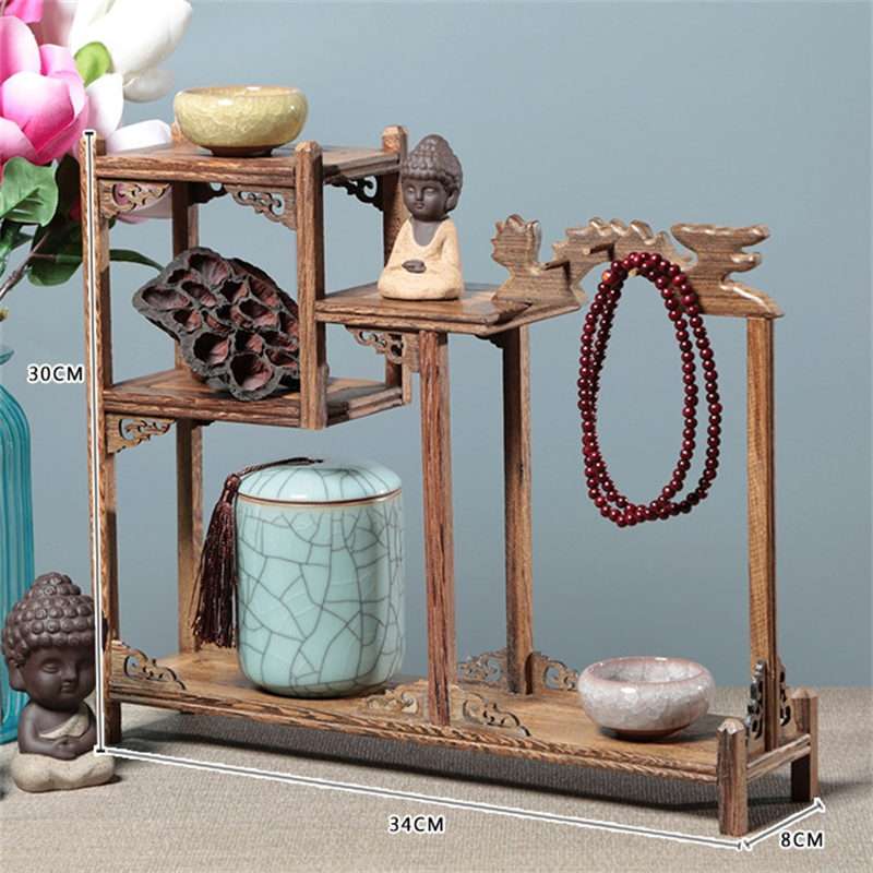 Rectangular Wooden Tea Cup And Towel Cheap Display Stand And Tea Shelf, featuring dimensions of 34*8*30 cm.