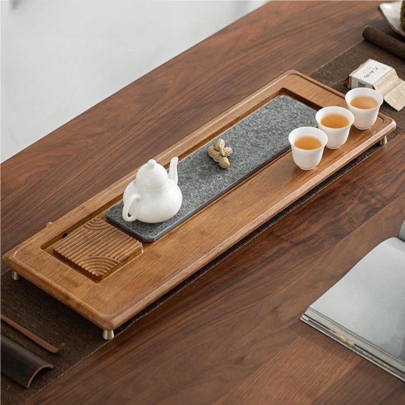 Experience the perfect balance of nature and craftsmanship with the Reinforced Bamboo and Black Stone Removable Gongfu Tea Cup Serving Tray. This elegant tray is meticulously designed to elevate your Gongfu tea ceremonies while offering versatility and aesthetic appeal. Crafted from reinforced bamboo and black stone, it showcases a sleek, modern design with natural materials that harmonize beautifully. The combination of the warm bamboo tones and the smooth black stone creates a striking contrast, making it both a functional and visually stunning piece. This serving tray is designed with both practicality and beauty in mind. The reinforced bamboo frame offers durability, ensuring long-lasting use, while the black stone insert adds a touch of sophistication. The stone section is removable, making it easy to clean and allowing for customizable arrangements. Whether used for serving tea or displaying other items, this tray is perfect for enhancing any tea setting or dining experience.