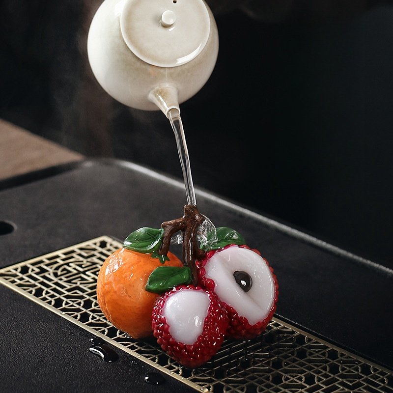 Beyond its visual appeal, this orange and lychee tea pet carries deep cultural and symbolic meaning, serving as a reminder of good fortune and positive energy in every tea session. Over time, the resin material absorbs the essence of the tea, creating a distinctive patina that grows richer with each use, making this tea pet a highly personalized piece that reflects your own journey in tea appreciation. This gradual transformation adds depth to the tea pet, connecting you to the ritual and grounding each tea session in a sense of tradition and continuity. This tea pet is not only a decorative addition to your tea setup but also a meaningful representation of blessings, positive growth, and joyful abundance. Perfect for collectors, tea enthusiasts, or as a thoughtful gift for someone special, the Resin Orange and Lychee Chinese Tea Pet Color Changing for Good Meaning combines charm, cultural symbolism, and artistic appeal, inviting warmth, prosperity, and good fortune into every pour. This tea pet is more than just an accessory; it is a reminder of the harmonious balance between nature and tradition, enhancing your tea ritual with beauty and positive energy.