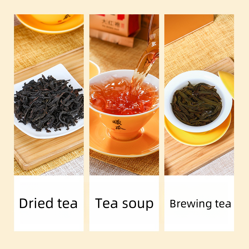Indulge in the exquisite taste and aroma of our Selected Premium Grade Authentic Da Hong Pao Tea Rich Floral Fragrance Wuyishan Dahongpao Tea 153g. This exceptional tea is crafted from carefully selected leaves, expertly processed to preserve their natural richness and floral fragrance. As you can see in the image, the dried leaves unfurl beautifully during brewing, releasing a captivating aroma and yielding a vibrant amber liquor. With each sip, you’ll experience the complex layers of flavor that define authentic Wuyishan Dahongpao Tea. This 153g package of Selected Premium Grade Authentic Da Hong Pao Tea offers a generous amount of this exceptional tea to savor and enjoy.