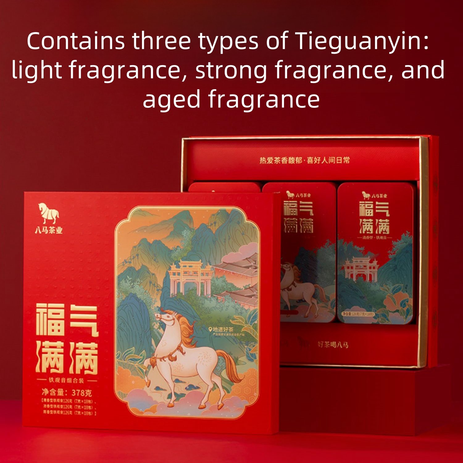 Each tin in the Spring First Grade Anxi Tieguanyin Oolong Tea Combo is meticulously prepared to ensure the highest quality and freshness. The Light, Strong, and Aged aromas are not only distinct in flavor but also in their brewing characteristics, providing a unique experience with each cup. Whether you are a seasoned tea connoisseur or a newcomer to the world of oolong, this combo offers a perfect introduction to the complexities of Tieguanyin tea. Packaged in a beautifully designed gift box, it makes an ideal present for any occasion, inviting you and your loved ones to explore the rich tapestry of tastes that this extraordinary tea provides.