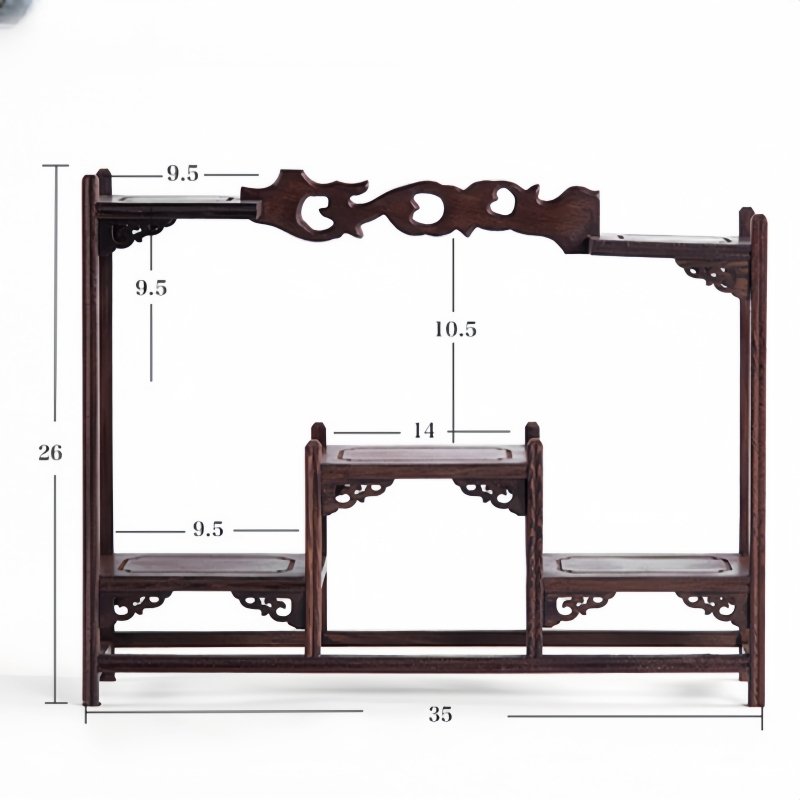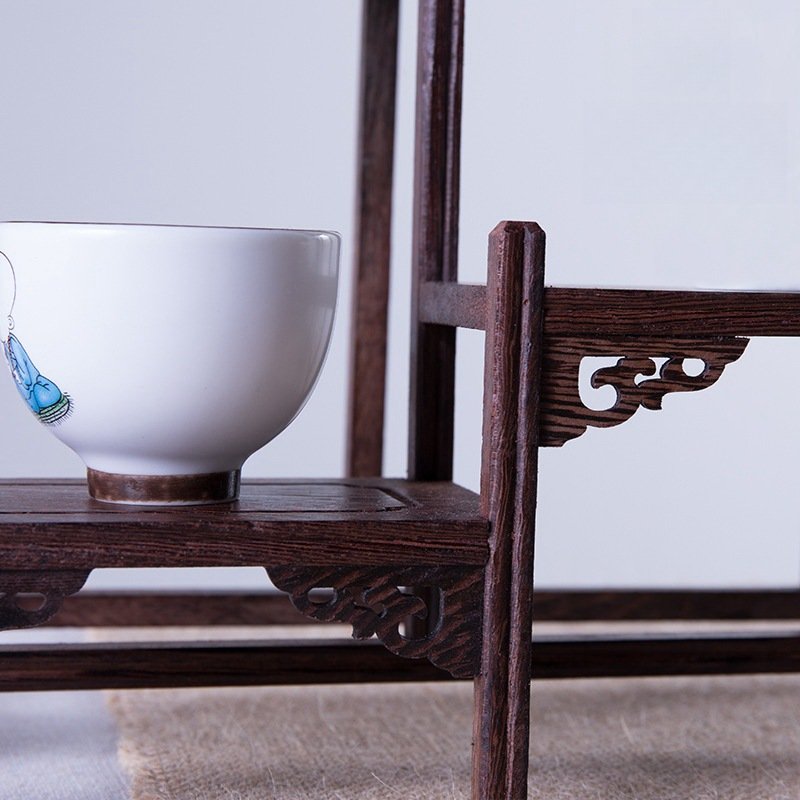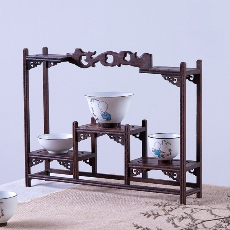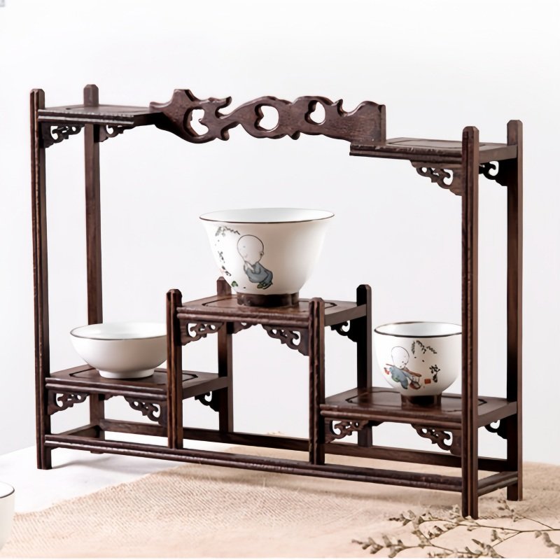 Traditional Chinese Redwood Solid Wood Tea Cup And Saucer Display Stand Shelf.Made from high-quality redwood, the display stand is both sturdy and visually appealing, combining durable construction with intricate design details. Its traditional Chinese craftsmanship is showcased through the fine carvings and smooth, polished finish, making it a standout piece in your home. The natural richness of the redwood complements the delicate carvings, highlighting the craftsmanship of this timeless display stand.Designed to enhance both the organization and visual appeal of your tea collection, the display stand features multiple levels for storing teacups, saucers, and other tea accessories. Its open shelving design ensures that your tea essentials are not only organized but also beautifully displayed. The shelves are spacious enough to hold a variety of items, from delicate tea cups to small teapots, keeping everything accessible and within reach. Its compact design allows it to fit easily into both small and large spaces, adding a graceful touch to rooms without overwhelming the space.