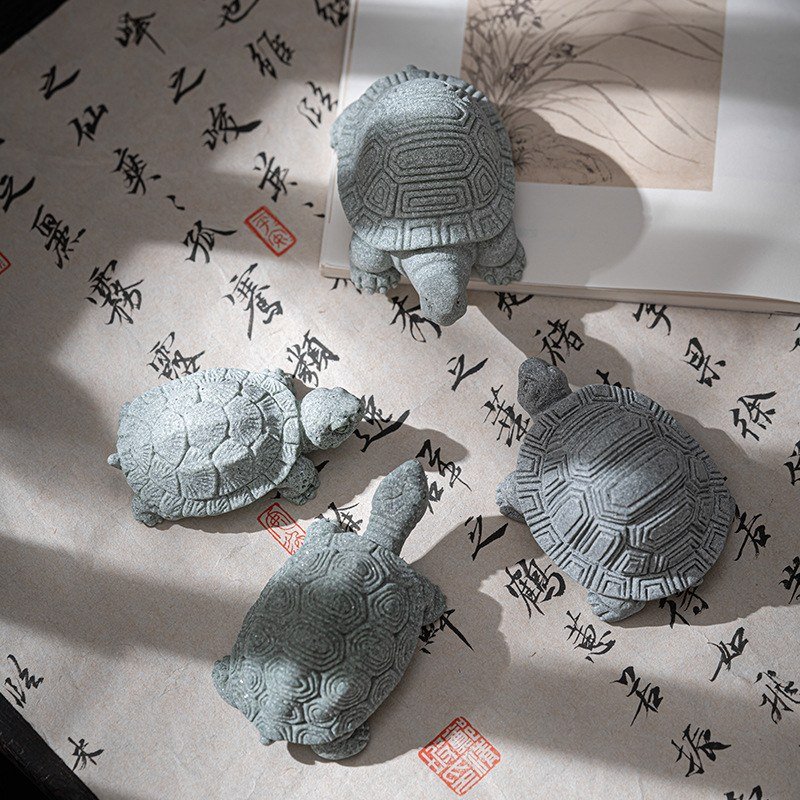 Beyond its decorative appeal, the blue sandstone turtle tea pet invites you to deepen your tea ritual into a meaningful personal journey. As tea is poured over it during each ceremony, the porous sandstone gradually absorbs the essence of the brew, forming a delicate patina over time that captures the spirit of every tea session. This slow transformation in color and texture reflects not only the passage of time but also your ongoing connection to the art of tea, making the turtle tea pet a treasured companion that grows in beauty and significance with each use. Perfect for tea lovers and collectors alike, this tea pet embodies a harmonious blend of craftsmanship and cultural symbolism. It serves as an ideal gift for those who appreciate the historical richness of tea culture, providing both aesthetic pleasure and a deeper connection to traditional values. With its presence, every tea session transcends the ordinary, transforming into a mindful practice steeped in heritage, making this turtle tea pet a timeless addition to any tea enthusiast’s collection and a lasting symbol of tranquility.