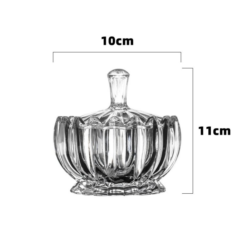 Vintage Lotus Shaped Glass Candy Table Jar Gift Ideas With Lid For Party, featuring dimensions of 10 cm by 11 cm.