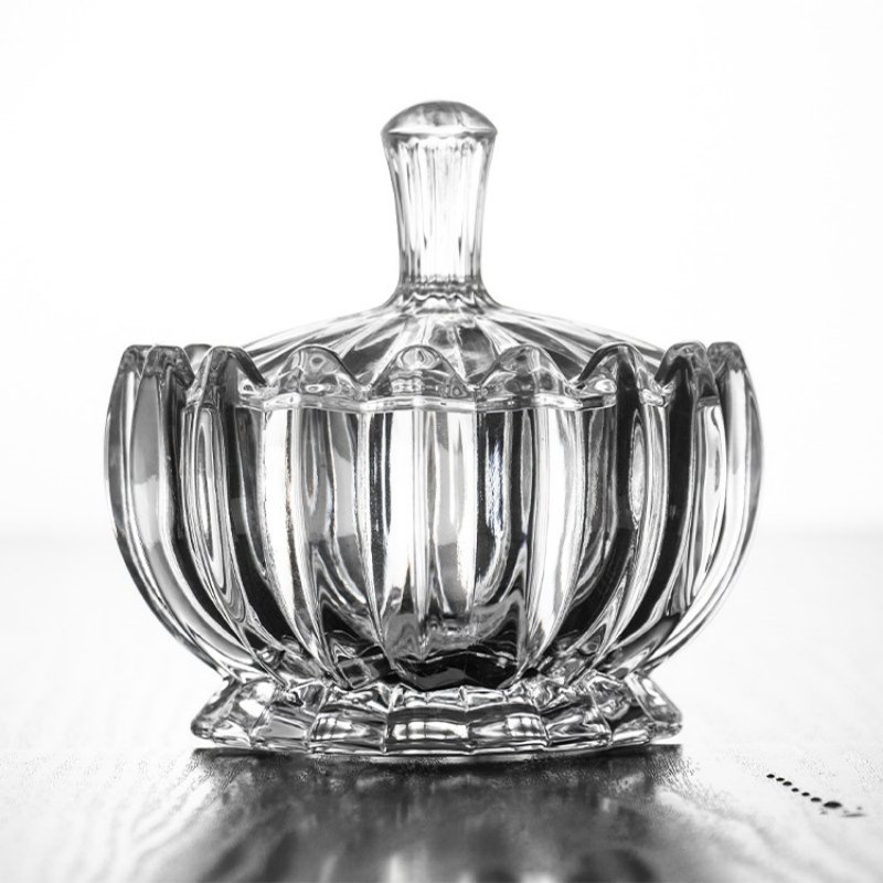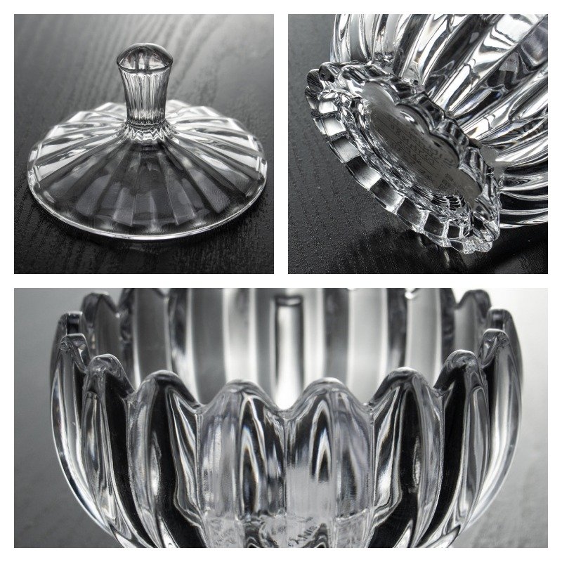 • Vintage Lotus Shaped Glass Candy Table Jar Gift Ideas With Lid For Party
